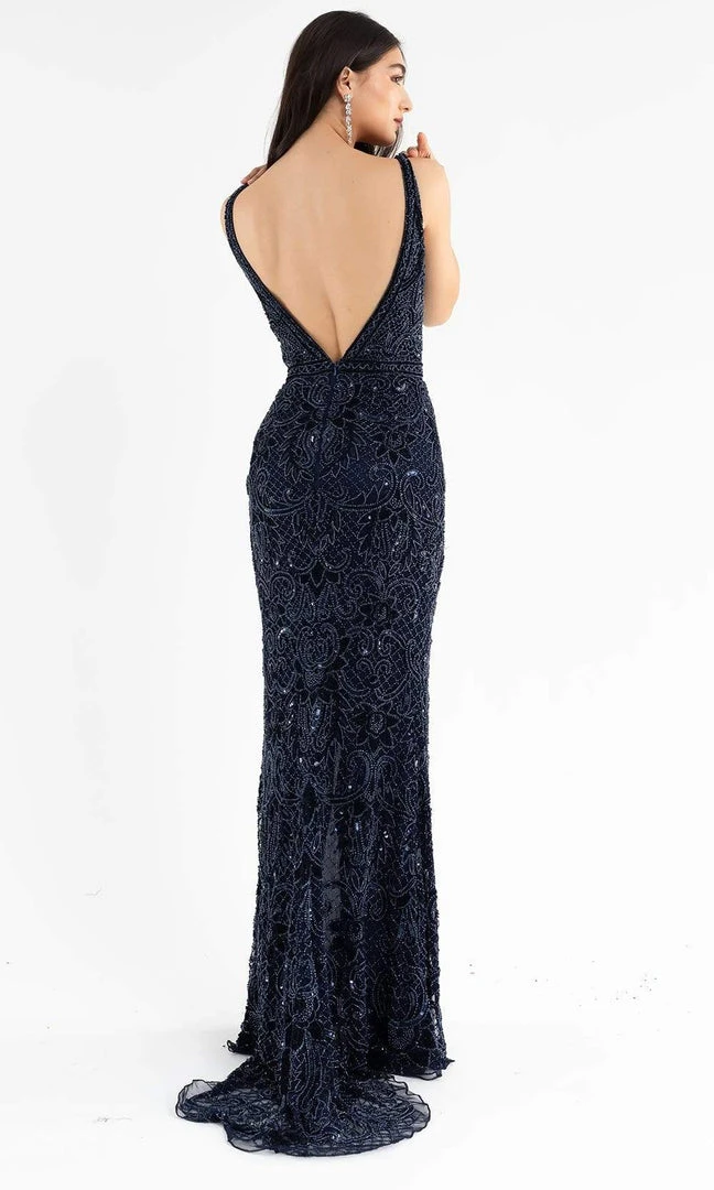 Show up in this Primavera Couture 3745 that has the perfect amount of glitz and glamour. This sleeveless gown is beaded from the low V Neckline and Wide Straps that create a V in the Mid Back, it has a side slit that makes it perfect. Primavera Couture will make sure you turn heads all night long. Primavera Couture’s sparkling long sequin dresses and cocktail dresses will dazzle you with compliments as these dresses are extremely impressive.