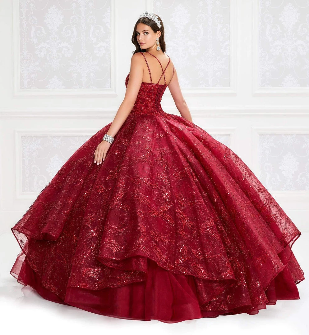Take their breath away with this stunning Princesa by Ariana Vara PR12006. This ball gown showcases a V-neckline, double spaghetti strap detail, crisscross back detail, corset back and a tiered skirt with a horsehair hem detail. Stone accents throughout bodice. A matching jacket included. Princesa by Ariana Vara will let you shine like the star that you are.