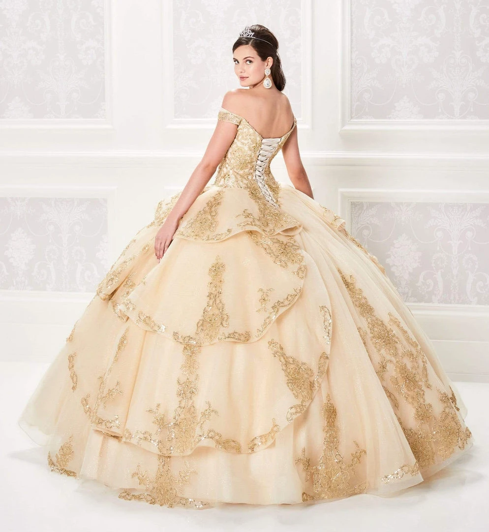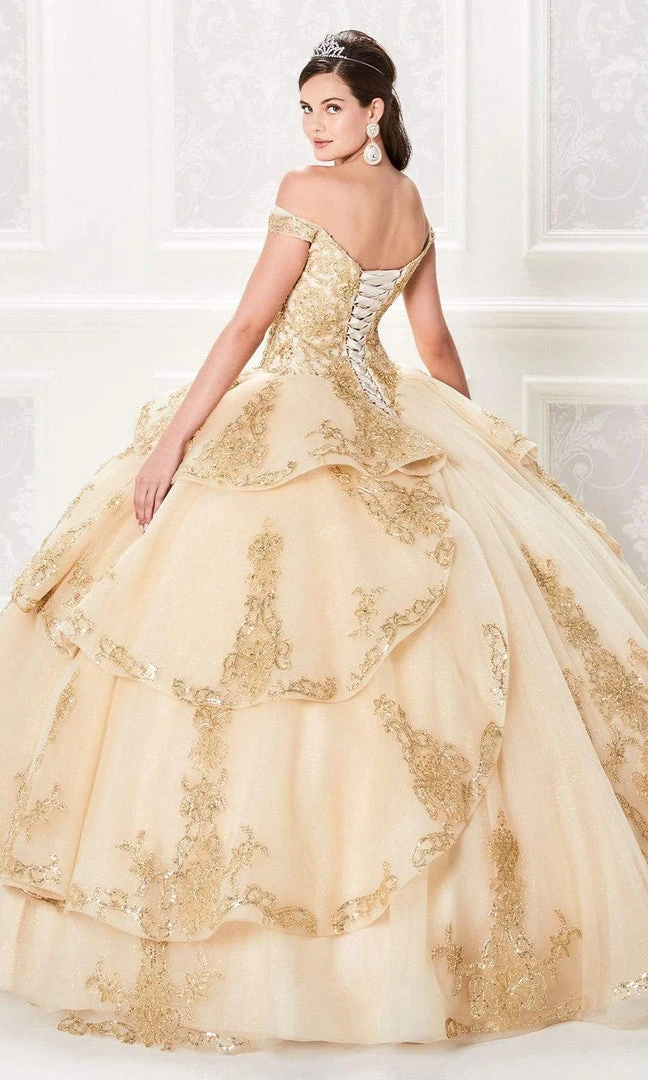 Make a queenly entrance with this Princesa by Ariana Vara PR21962 masterpiece. The fitted bodice features a flattering off-shoulder neckline, complemented with mid-open laced up back. Beaded lace appliques design the whole dress as the gathered and layered skirt reveals a full length ballgown silhouette. This design by Princesa by Ariana Vara will definitely parade your elegant and classy style on your next formal occasion.