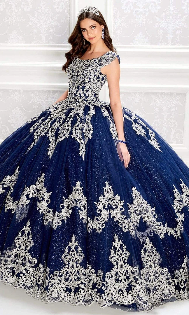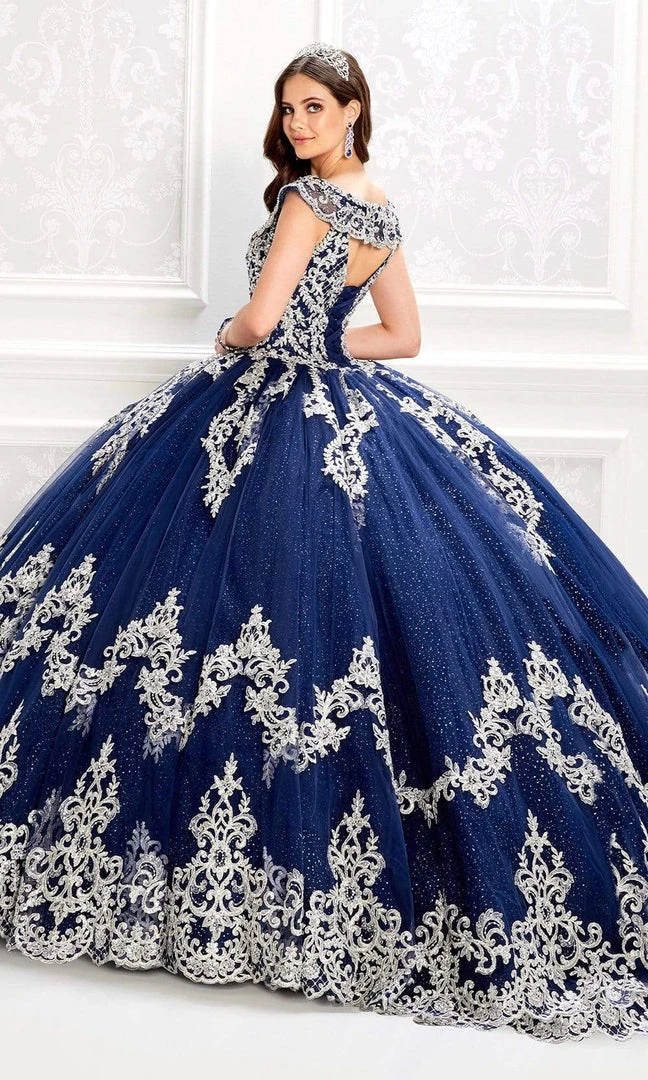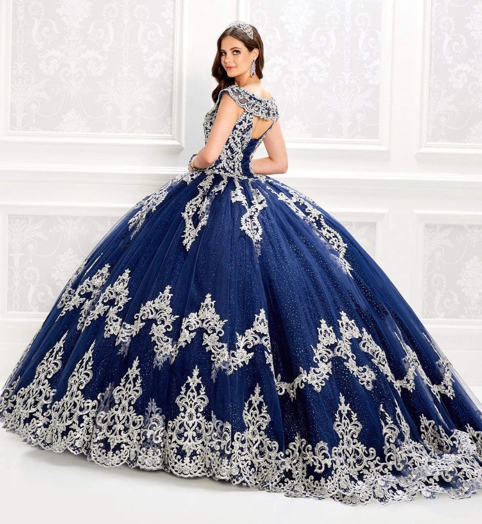 Appear in elegance in Princesa by Ariana Vara PR22035. This off shoulder glitter tulle and lace applique ball gown features a scoop neckline, beaded bodice, basque waist, corset back with a keyhole detail, lace appliques all over the skirt and exits with a sweep train. This Princesa by Ariana Vara will definitely bring out the goddess in you!