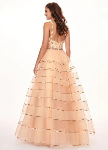 Have a blast in this fashionable Rachel Allan 6576 Prom Gown. This pretty ballgown style with a twist, features a sweetheart neckline held by fine shoulder straps, molded bust and fitted bodice with visible boning and heat-set stone embellishment. The beaded belt on the natural waist crowns the skirt, while glittering sequins lined horizontally in the alternating mesh and tulle fabric of the skirt creating dimension on this full-length gown. Look brilliantly stunning as you waltz into the party looking fabulous in this Rachel Allan creation.