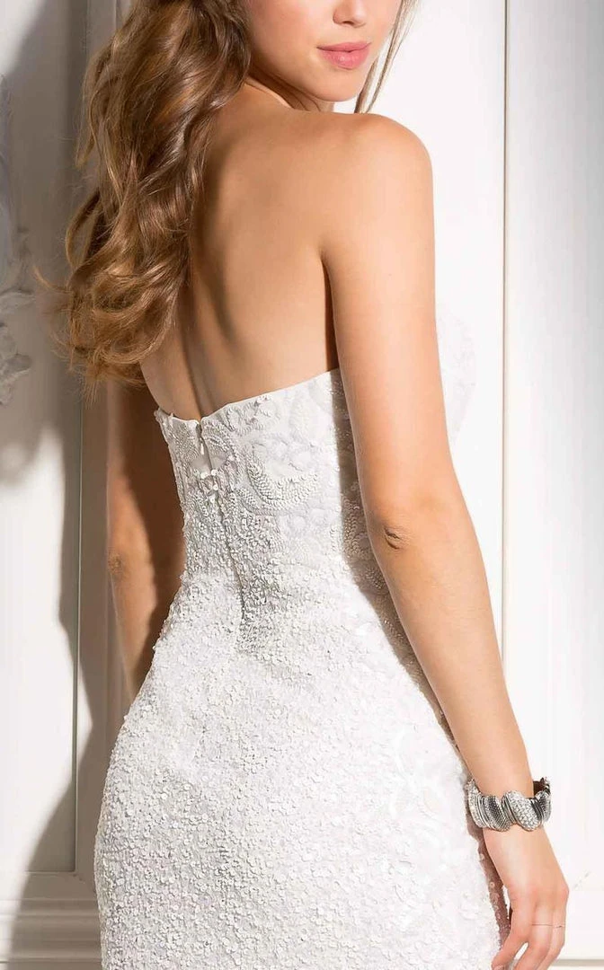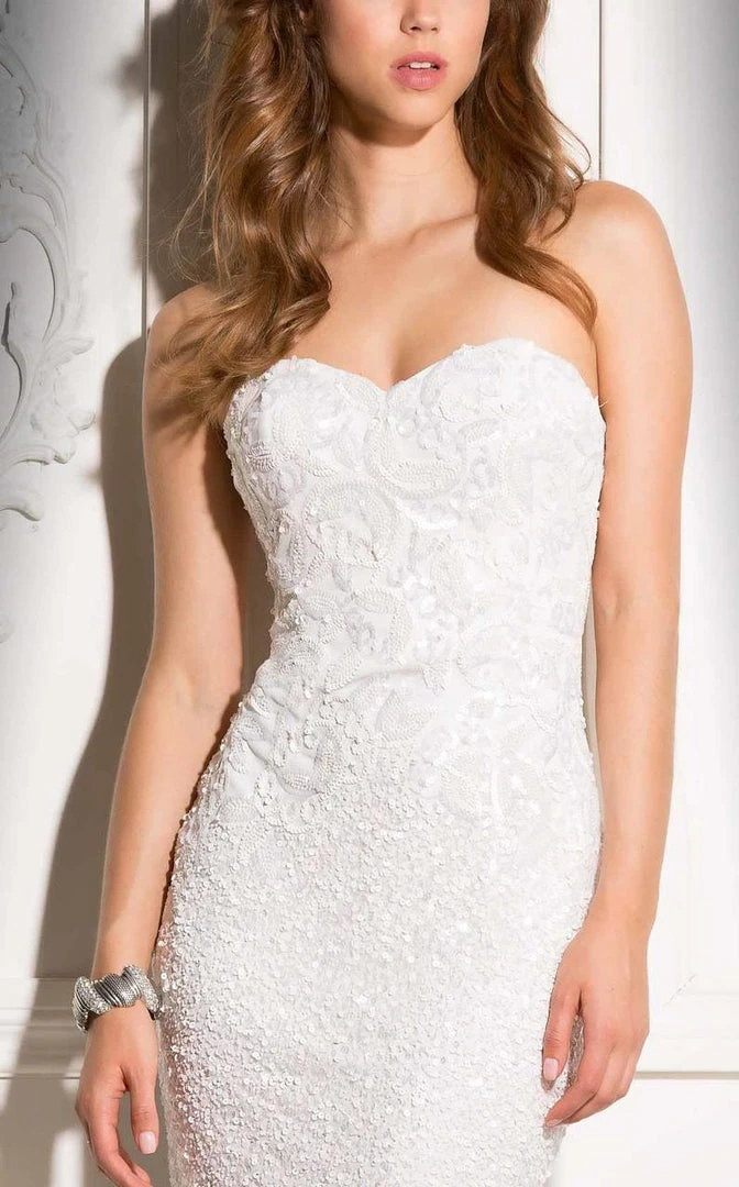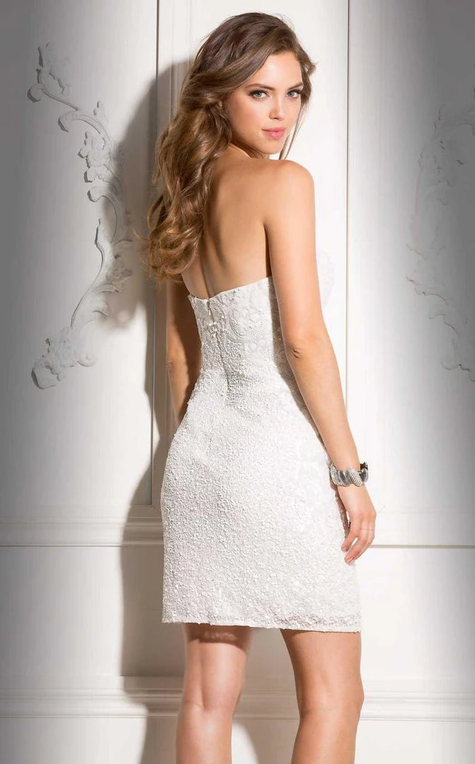 Rock this short Scala dress 48702 for your social occasion. Fabulous sequins are intricately patterned along the bodice as a classic sweetheart neckline flatters your figure. The shimmering sequined skirt hugs your figure as your dance the night away. You will wow the crowd wearing this timeless Scala cocktail dress.?á