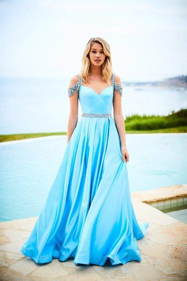 Bring that chic style to the ballroom wearing this Sherri Hill 51613 creation. Jewel beaded cut-in cold shoulders and structured sweetheart neckline showcases this satin ballgown ensemble. Features fine princess seam lines that sculpts the fitted bodice and crystal beaded belt that crowns the skirts from the natural waistline. The full-length ballgown skirt sways with elegant pleats as it finishes with sweep train . Get glam in this fabulous Sherri Hill creation.
