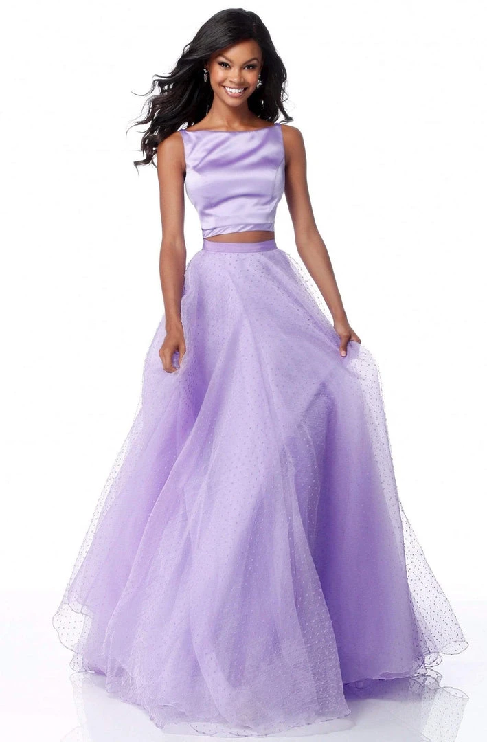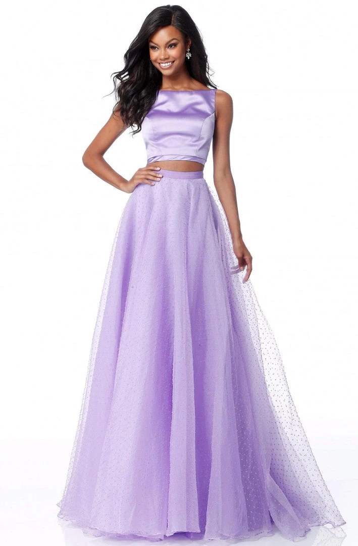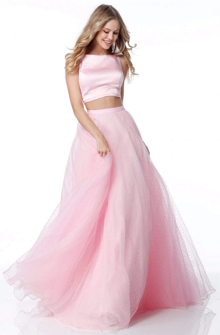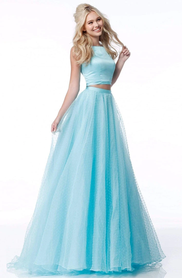 This Sherri Hill 51895 style is a sure standout on your next evening social event. This two piece ensemble shows off in a sleeveless, satin halter neckline crop top that flatters your shoulders and bodice. The tulle skirt opens in a voluminous ballgown silhouette. Mesmerize everyone in this charming look by Sherri Hill. Model is wearing Aqua color.
