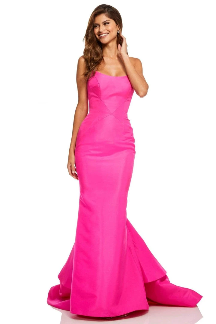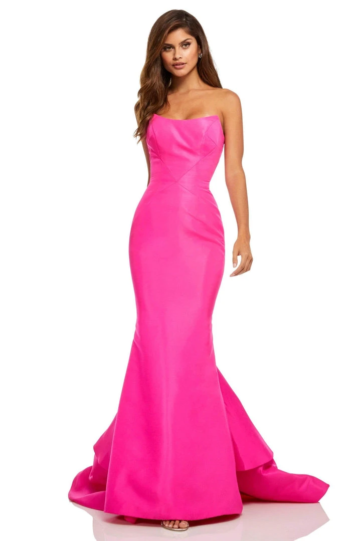 Come alive in a statuesque design bestowed by this Sherri Hill 52601 creation. Impressively crafted with peaked seams on a vibrant taffeta fabric, this piece shows a strapless straight-across neckline. Defined with a low open back, the mermaid skirt skims and flares into a full-length hemline. A fishtail spectacle streams into an impressive sweep of train. Conceive a touch of timeless elegance in this Sherri Hill masterpiece. Model is wearing the Bright Pink color.