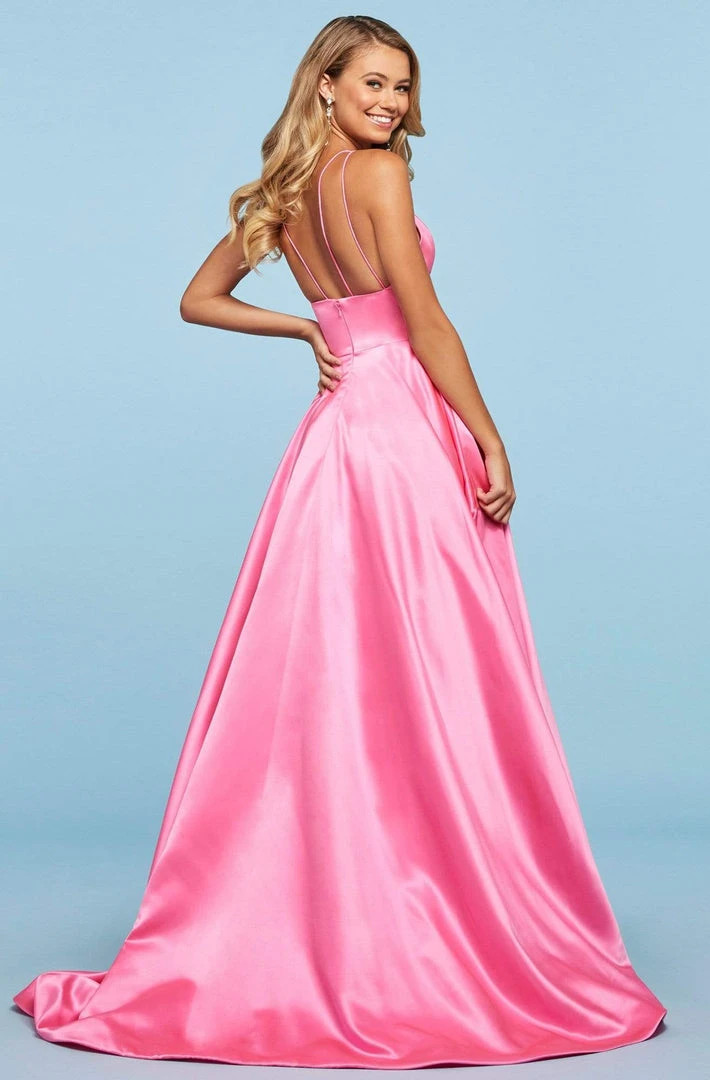 Draw out the princess in you with this dress by Sherri Hill 53312. This long gown delights a sleeveless, deep V-neckline with spaghetti straps. The fitted bodice is accented with beading while the skirt fashions a full length A-line silhouette with a sweep train finish. This Sherri Hill creation is truly remarkable!