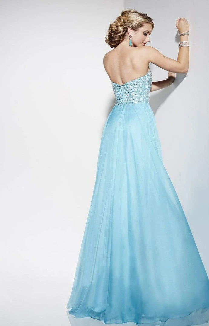 Make your debut in a red carpet dress from Studio 17 12543. This chiffon gown features a sweetheart strapless neckline and a natural waist. The bodice is heavily beaded with AB stones, and the skirt is a full circle. This stunning long dress by Studio 17 brings together all the essentials for a great look at prom or party!