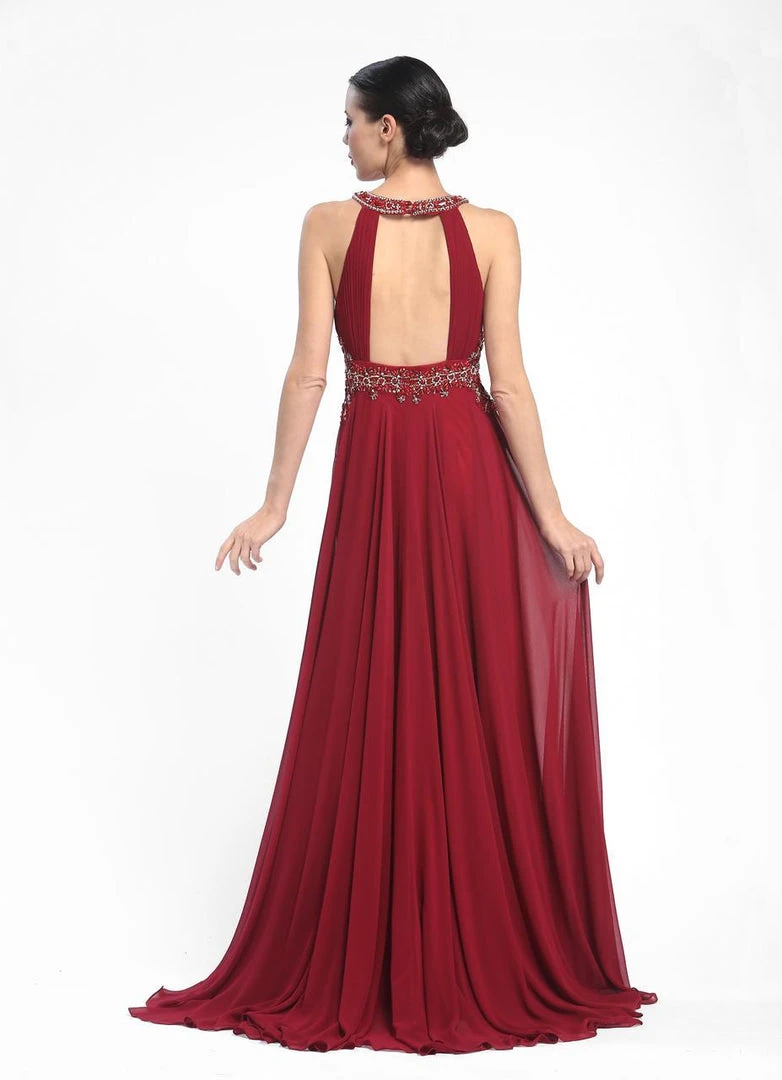 | Details: | Sleeveless, Halter neckline, Beaded, Ruched bodice, Chiffon (100% Polyester) Lining (100% Polyester) |