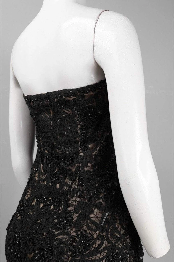 Always make a lasting unforgettable impression when you walk in your glamorous party in this mesmerizing Sue Wong S0300 creation. Fascinatingly detailed with an elaborate ribbon floral design on a seam-sculpted mesh fabric, this ravishing piece flaunts a strapless straight-across neckline paired with a delicate mid-open back. Contoured along the fine feminine features, the sheath skirt flows along the curves down to an alluring short hemline. Grace your party in impeccable taste as you outshine everyone in this Sue Wong masterpiece. Model is wearing the Black color.