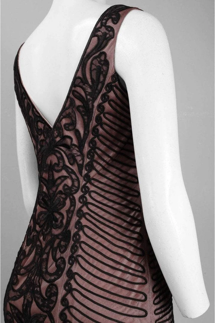 Catch that stunning look in this Sue Wong N4305 dress. This chic cocktail dress is sleeveless with shoulder straps to accent your arms. The v neckline and v back highlight your bust and shoulders. This knee length dress has a sheath silhouette and is decorated with ornate pattern. This Sue Wong dress is sure to add glamour on your next formal event!