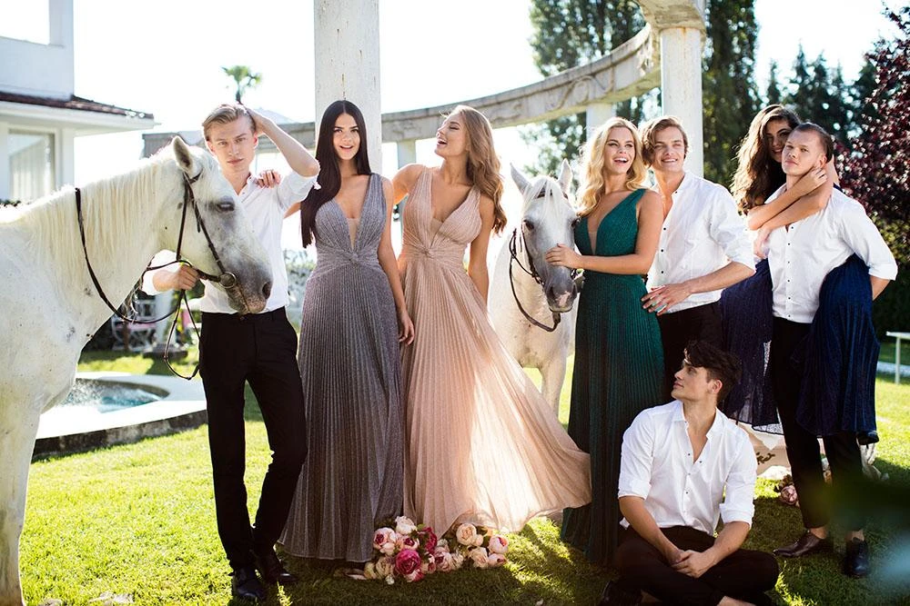 Resonate a sophisticated style glows like that of stunning celebrities in this Tarik Ediz 50548 creation. Adorned with pleats on a sparkly jersey fabric, this understatedly feminine piece presents a plunging v-neckline with a sheer illusion inset. Knotted at the midriff to breakoff that vertical texture, the A-line skirt gathers before gracefully flaring into an effervescent full-length hemline. Model an utterly mesmerizing style in this lavish Tarik Ediz masterpiece.