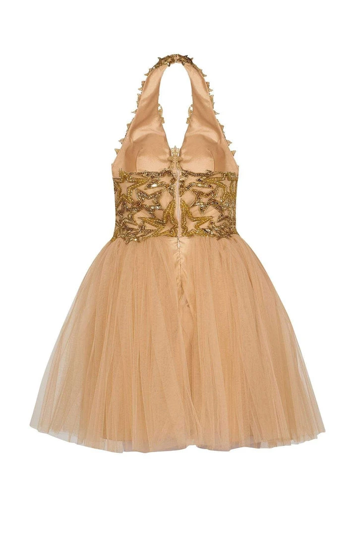 | Details: | Sleeveless, Haltered straps, Bead embellishment, Open back |