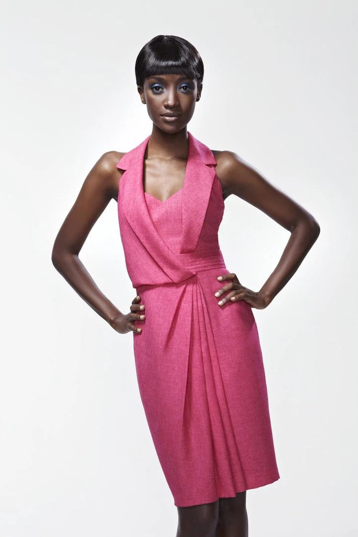 | Details: | Sleeveless, Notched collar, Draped side, Fabric: Tweed (100% Polyester) Lining (95% Polyester 5% Spandex) |